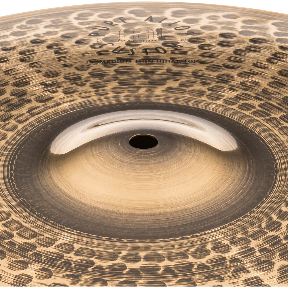Featuring a custom smoked-bronze top and brilliant bottom, Pure Alloy Custom hihats have a thin top and medium-thin bottom, giving them the dynamic range needed to be crisp and sensitive in the studio as well as full and loud on the stage.